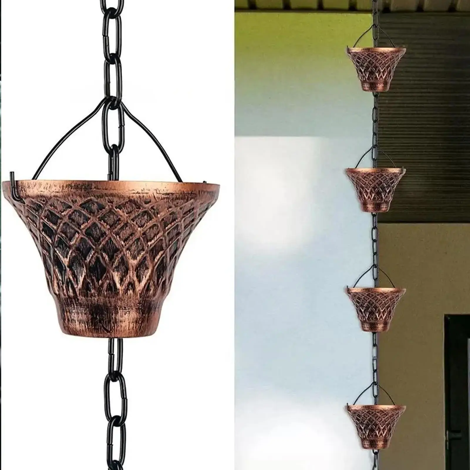Rain Chains For Outside 9FT Copper Heavy Duty Decorative Downspout 12 Cups Copper Rain Chain For House Garden Outdoor Gazebo