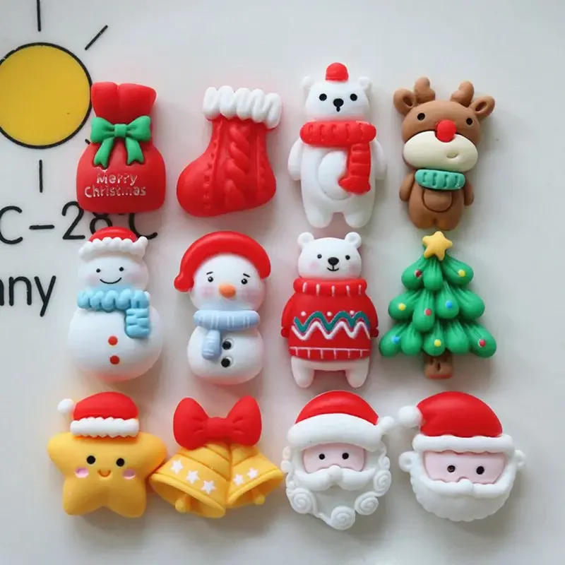 10PCS Resin Colorful Christmas Tree Snowman Deer Bear Figurine Flat back Scrapbook DIY Accessories Cartoon Christma Decor Crafts