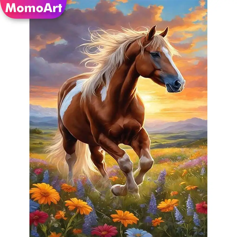 Momoart 5D DIY Diamond Painting Horse Animal Full Square Round Diamond Mosaic Flower Suitable For Beginners Handicraft