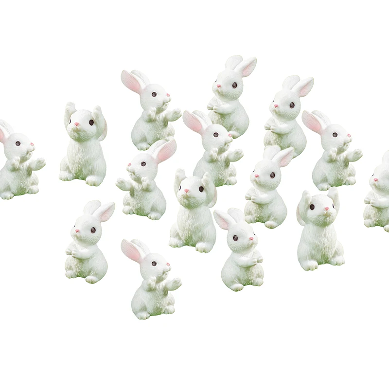 60pc Resin Miniature Rabbit Figurines Bunny Statues for Fairy Garden Decor Micro Landscape Ornaments DIY Crafts Cake Decor