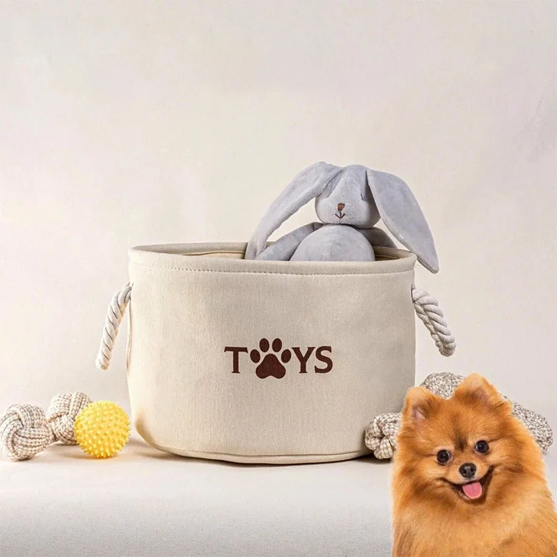 Large-Capacity Cartoon Storage Basket Pet Storage Basket Cat And Dog Toy Storage Foldable With Handle Pet Supplies