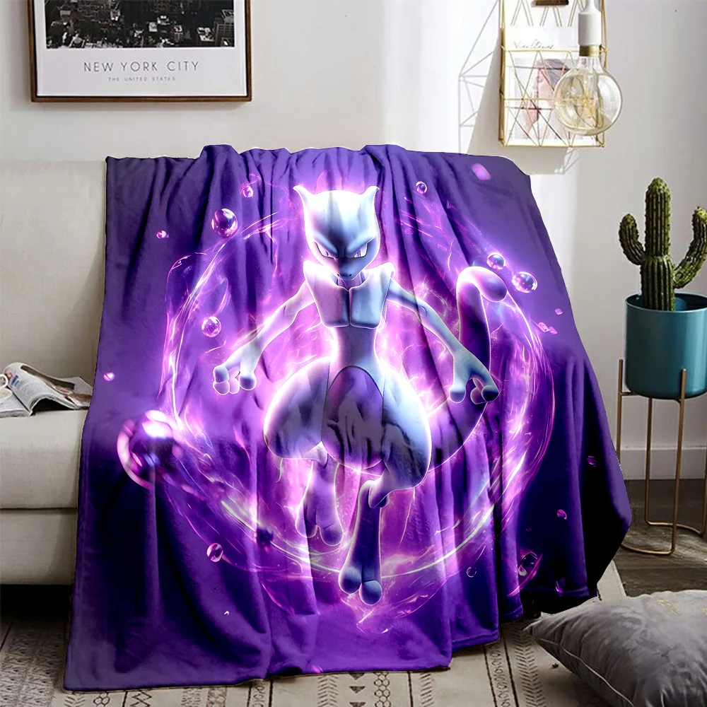 Cool Pokemon-Mewtwo Cartoon Anime Print Flannel Office Soft Fluffy Shawl Blanket Plush Nap Cover Girl Gift Picnic Blanket