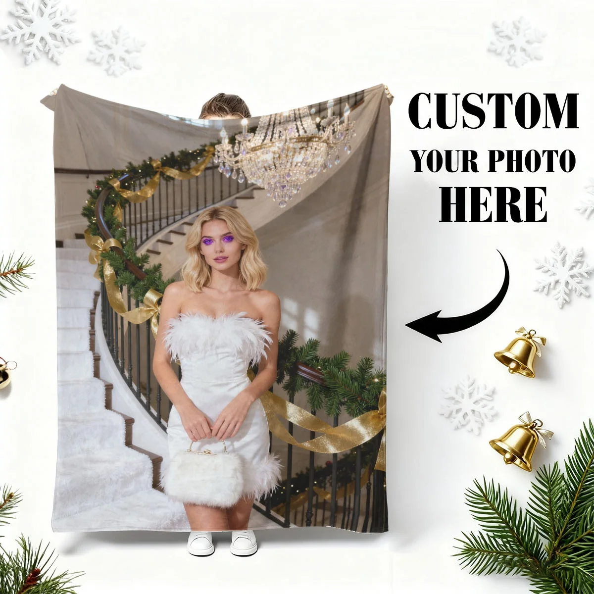 1 Custom Christmas Personalized Photo Flannel Blanket - High-Definition Print That Doesn'T Fade, Lightweight, Warm, Skin-Friendly, Machine Washable, Suitable for Bedroom, Sofa, Office, Christmas