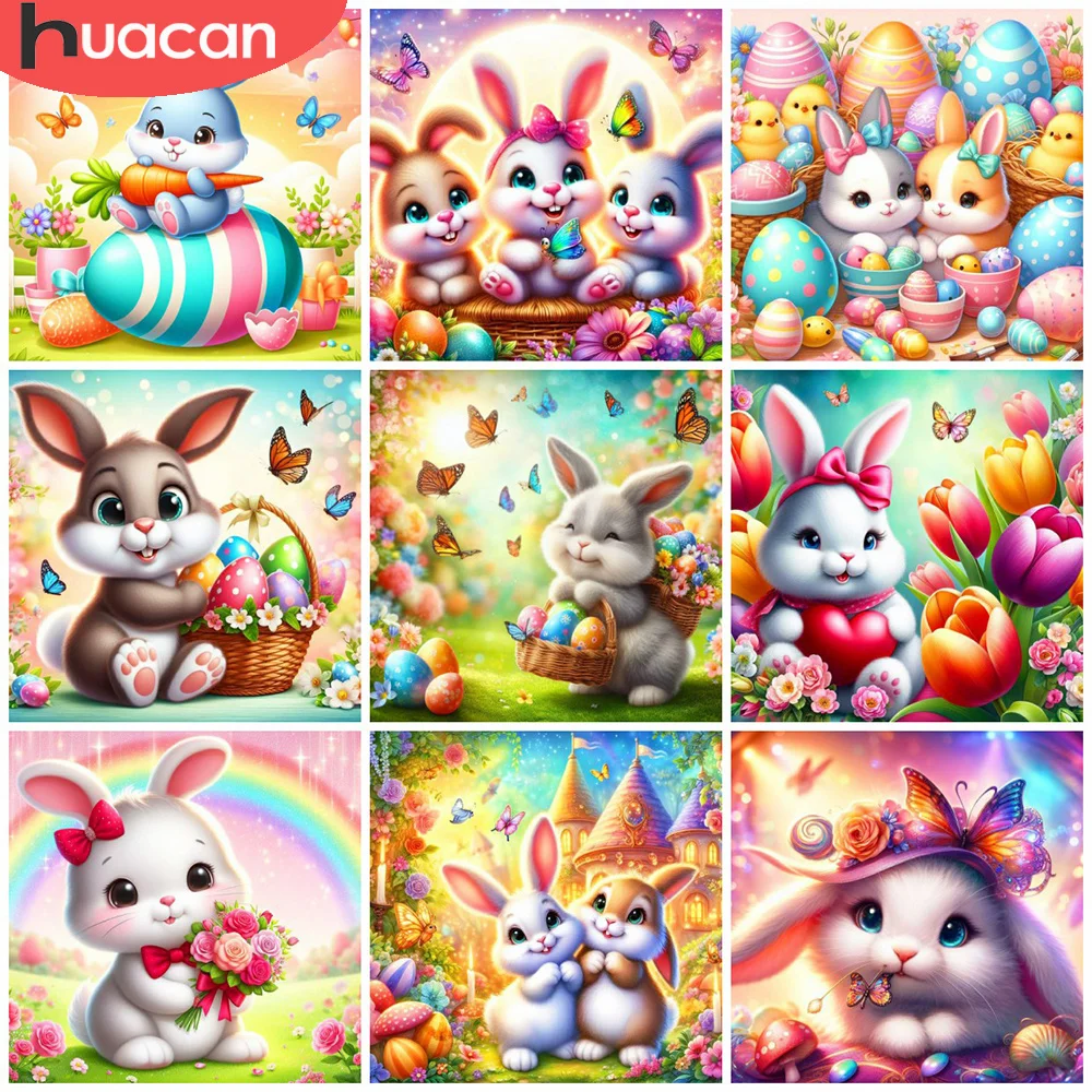 HUACAN Easter Diamond Painting Animal Rabbit Full Round Square Diamond Mosaic Egg Set New Arrivals Art Wall Decor