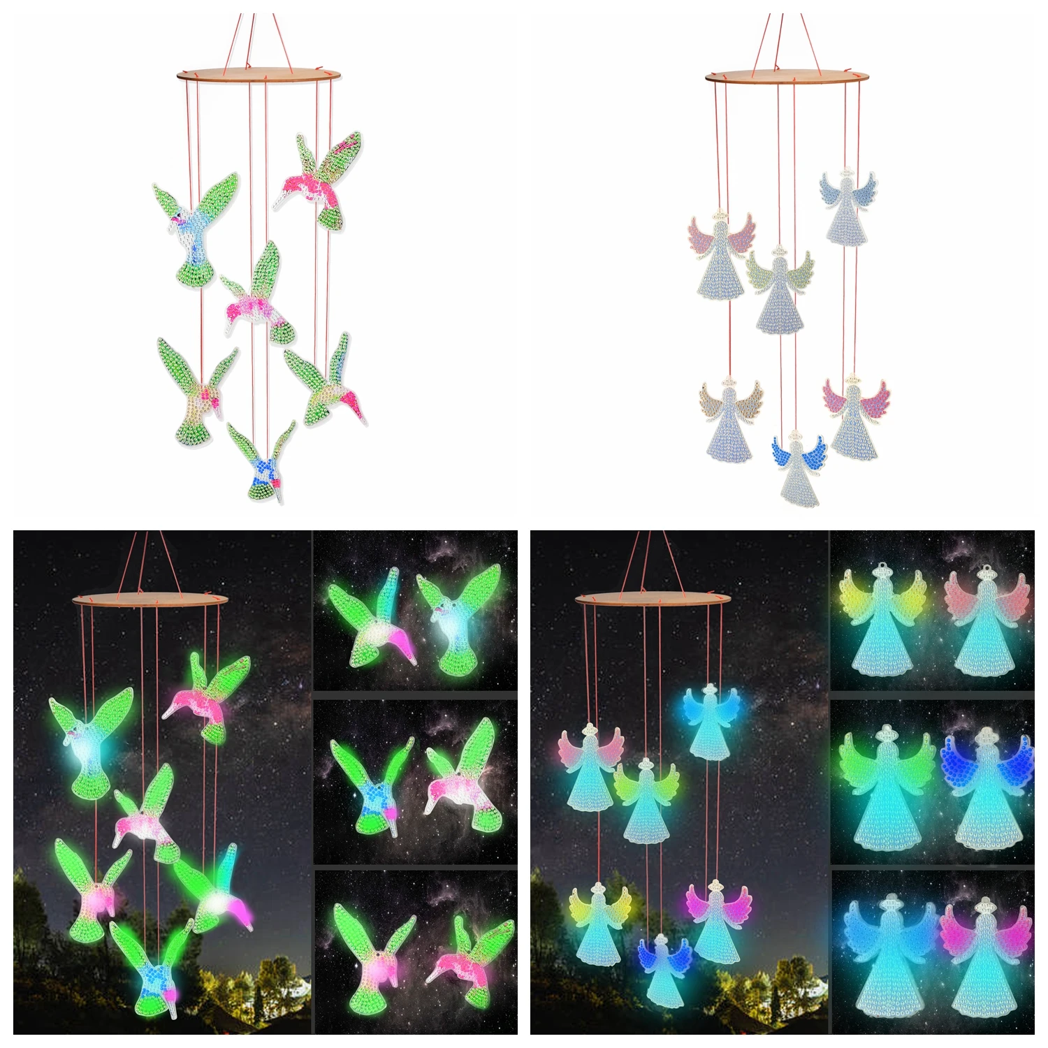 1pc/Set DIY Luminous Diamond Painting Wind Chimes Acrylic Wind Chimes for Window Decoration Hummingbird Diamond Art Wind Chimes