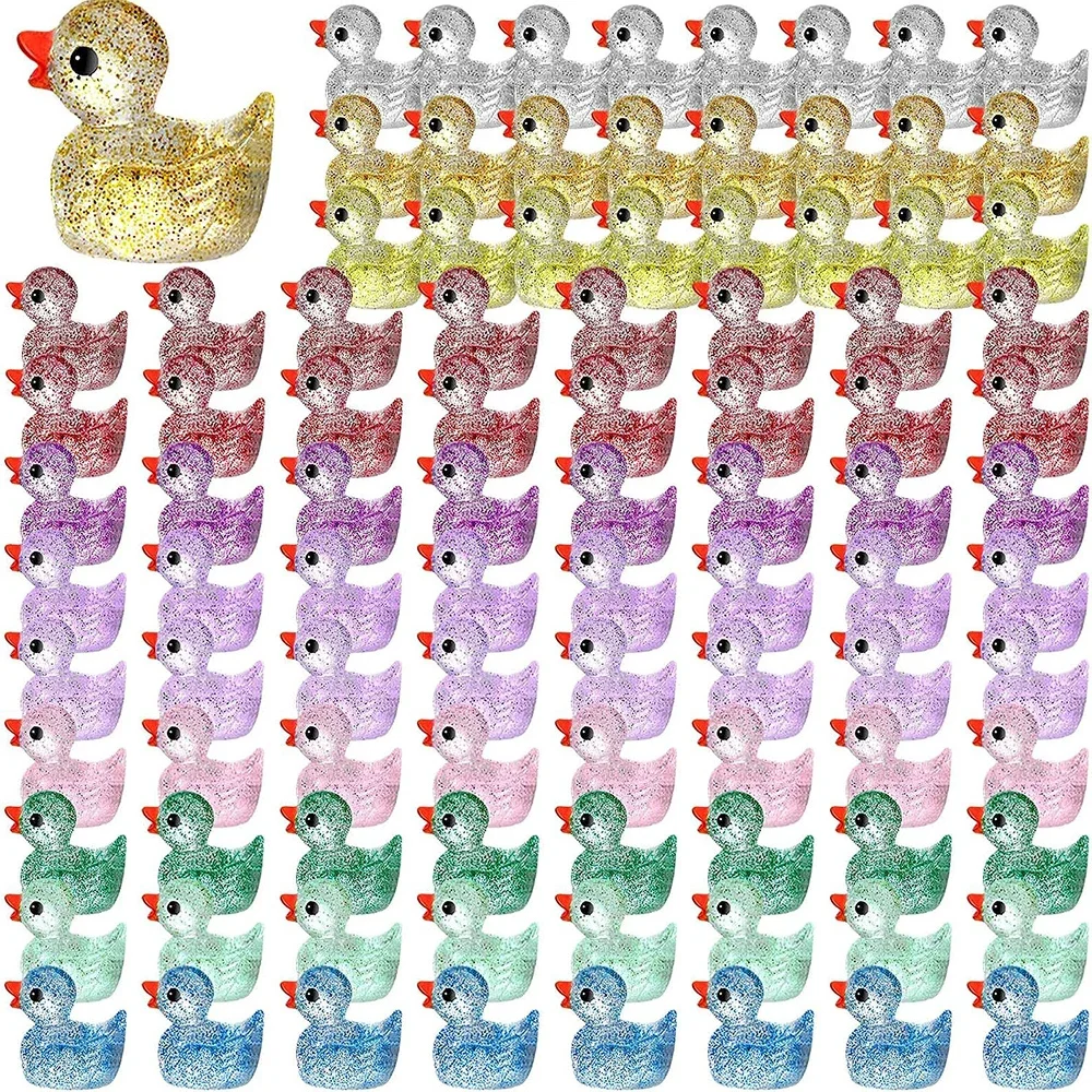 120Pcs Mini Resin Ducks Glitter Miniature Figure Tiny Duck for DIY Garden Aquarium Dollhouse Ornament Home Birthday Party School