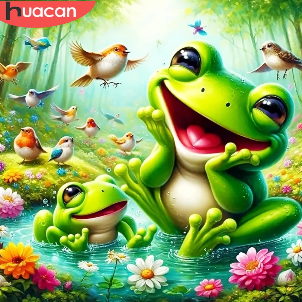 HUACAN Frog Diamond Painting Bird Flower Full Square Round Drill Diamond Mosaic Animal Decoration Living Room