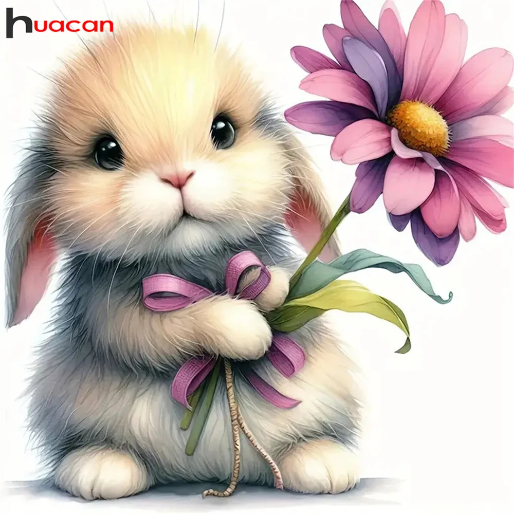 Huacan New Diamond Mosaic Animal Rabbit Picture Of Rhinestones Full 5d Diy Drill Painting Flower Home Decor Craft Kit