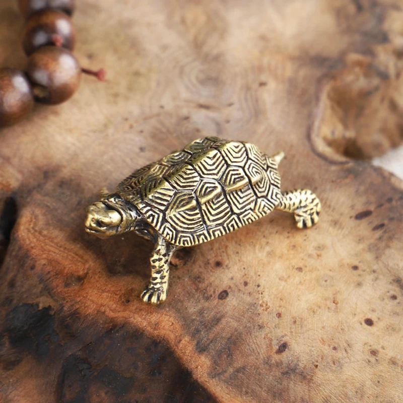 Solid Brass Sea Turtle Figurine Miniature Tea Pet Craft Desktop Small Ornament Animal Home Decoration Accessories Children Gifts