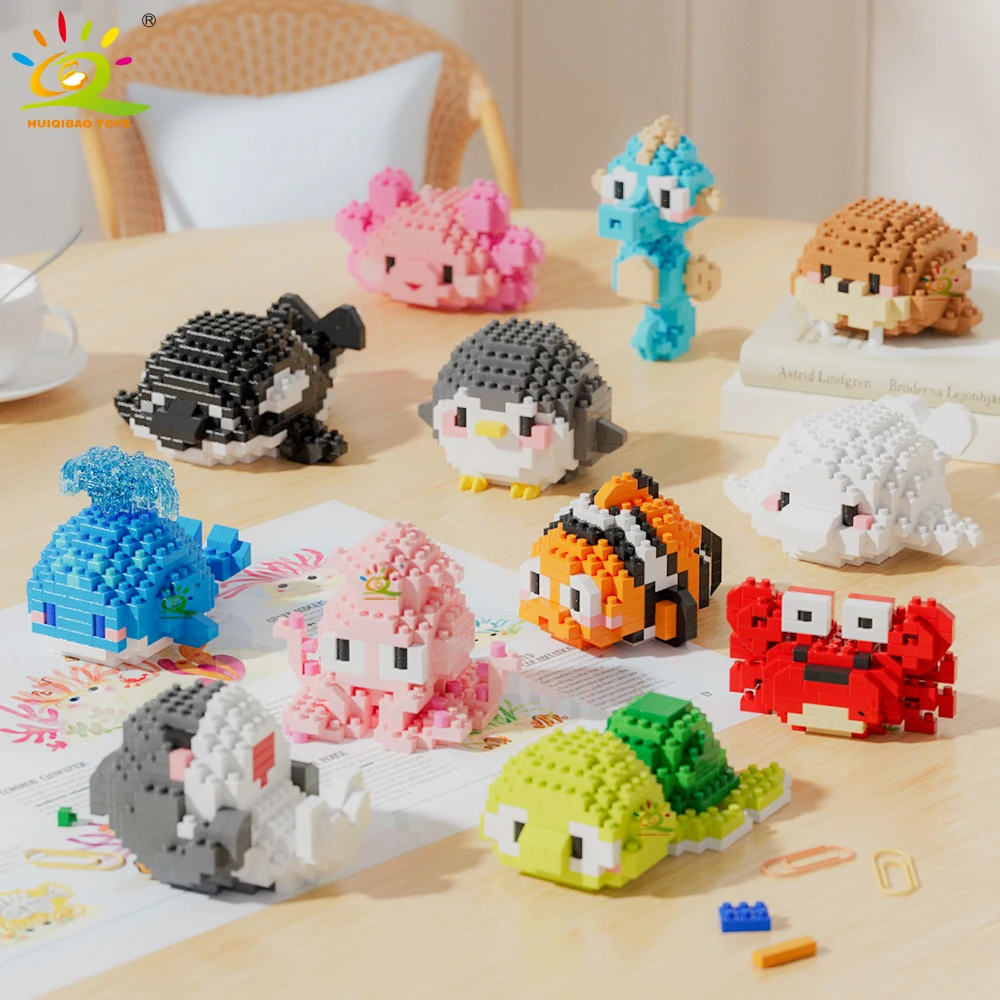 HUIQIBAO Mini Cute Shark Turtle Crab Sealife Animal Micro Building Block 3D Diamond Model Brick DIY City Toys for Children Kids