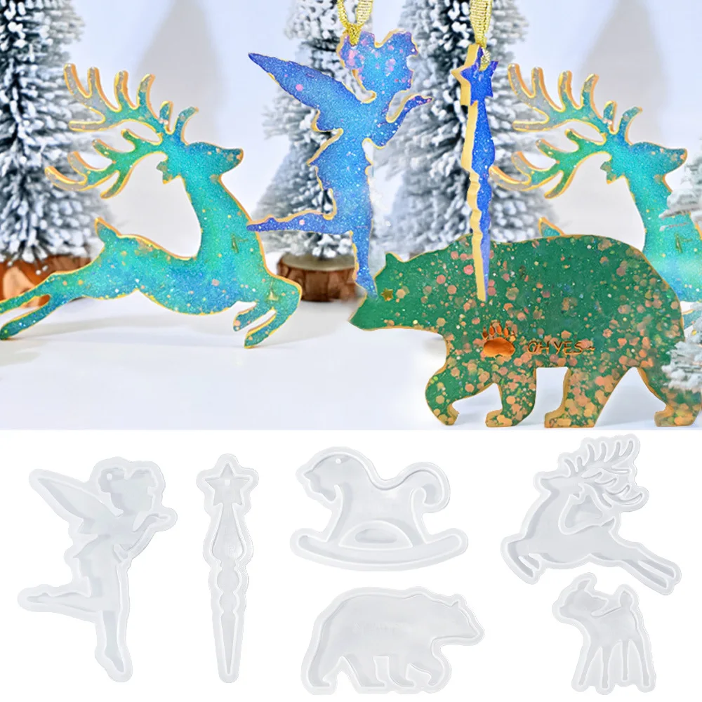 Mould DIY Polar Bear Animal Ornament Crystal Resin Molds Christmas Reindeer Creative Ornament Decorative Item Silicone Mold