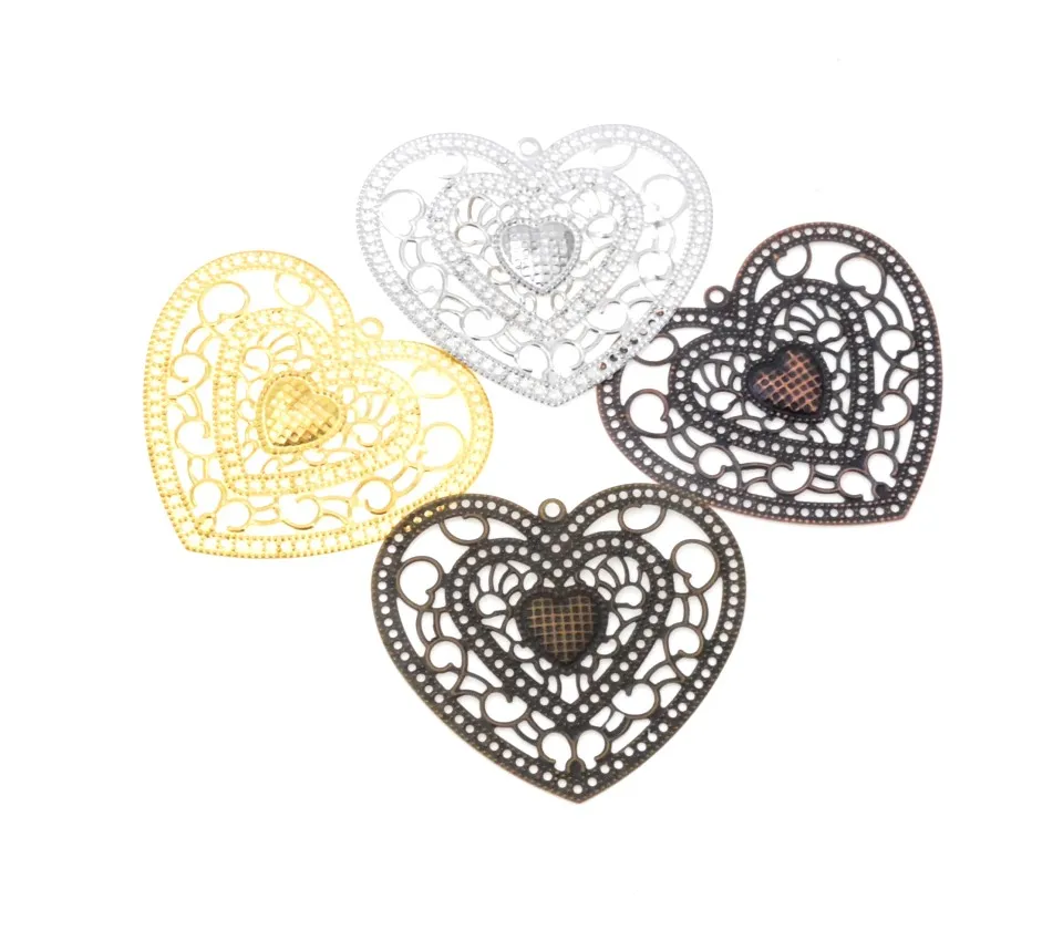 Free shipping 10Pcs Antique Copper/Gold/silver Filigree Heart Wraps Metal Crafts Gift Decoration DIY Findings Connectors 65x58mm