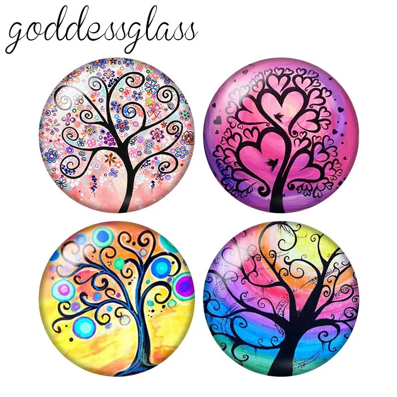 New Beauty Colorful Life of Tree Love hearts 10pcs 12mm/18mm/20mm/25mm Round photo glass cabochon demo flat back Making findings