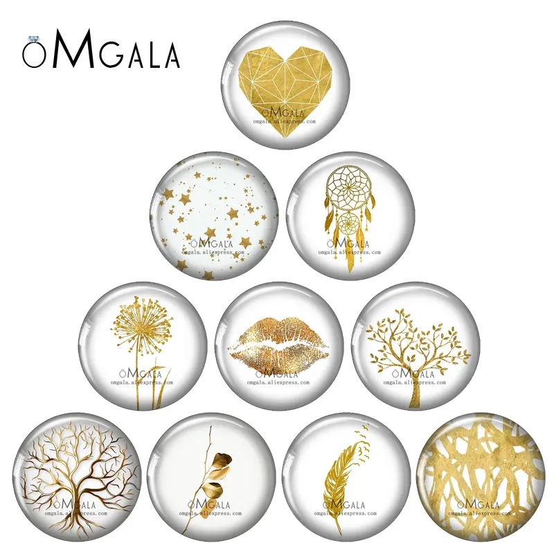 Golden Heart Star Lips Life Of Tree Pattern 12mm/18mm/20mm/25mm Round photo glass cabochon demo flat back Making findings
