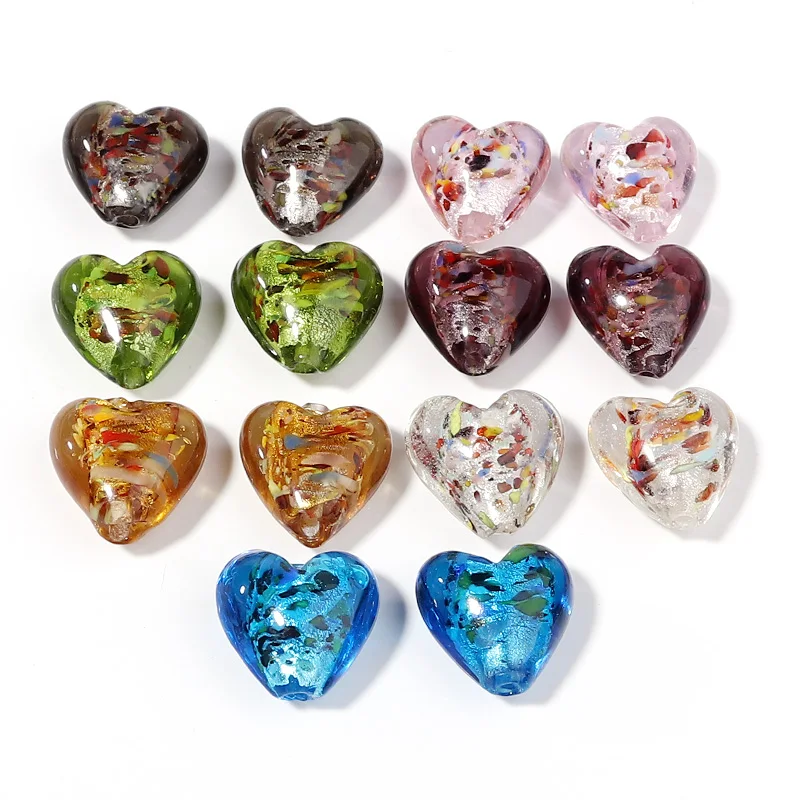5pcs/Lot Inner Plated Silver Color Heart Shape Lampwork Beads Crystal Glass Loose Spacer Beads for Jewelry Making DIY Bracelet