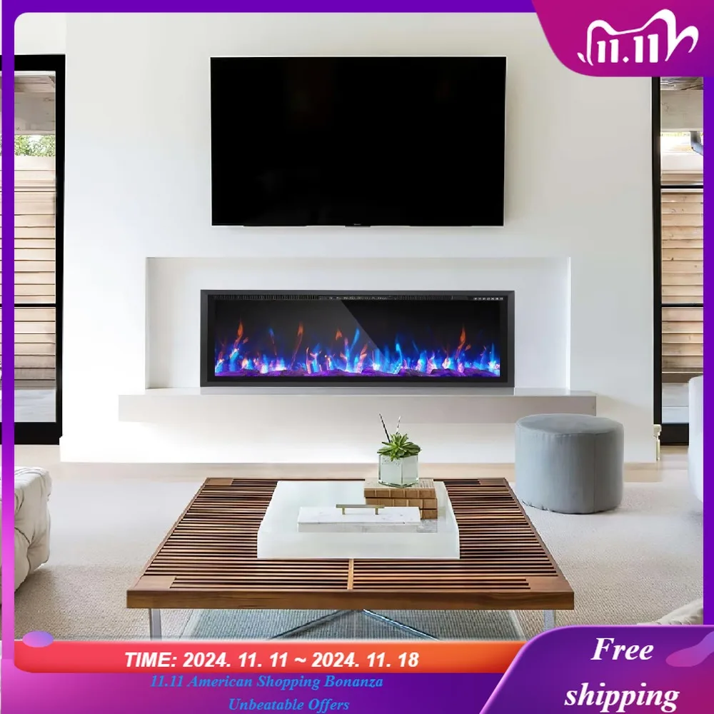 68 Inch Wide-Screen Electric Fireplace Inserts Recessed or Wall Mounted Electric Fireplace Heater 750/1500W Freestanding
