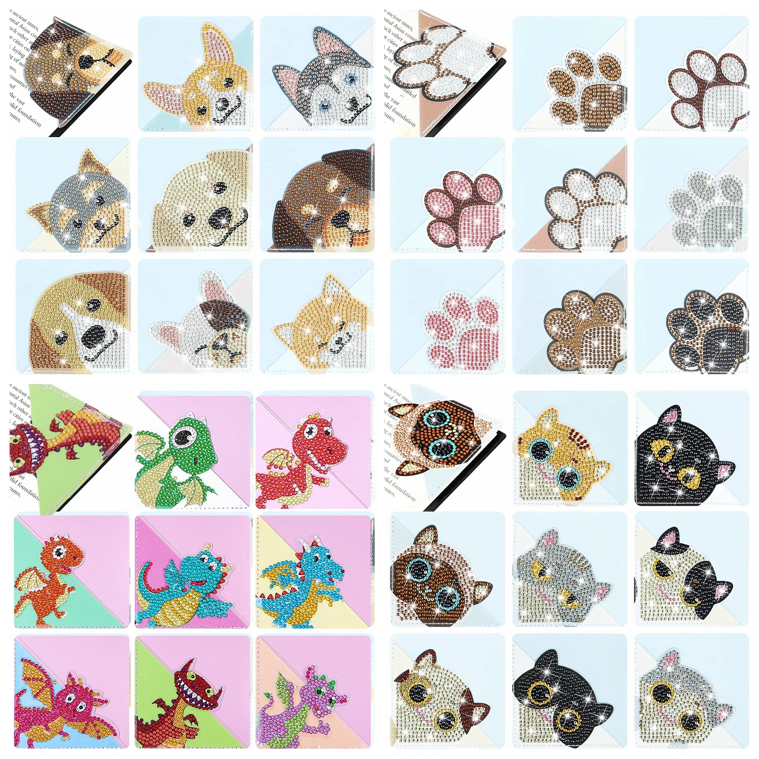 8pcs DIY Paw Diamond Painting Bookmarks Corner PU Leather Book Mark Crystal Rhinestone Diamond Art Corner Bookmarks for Adults