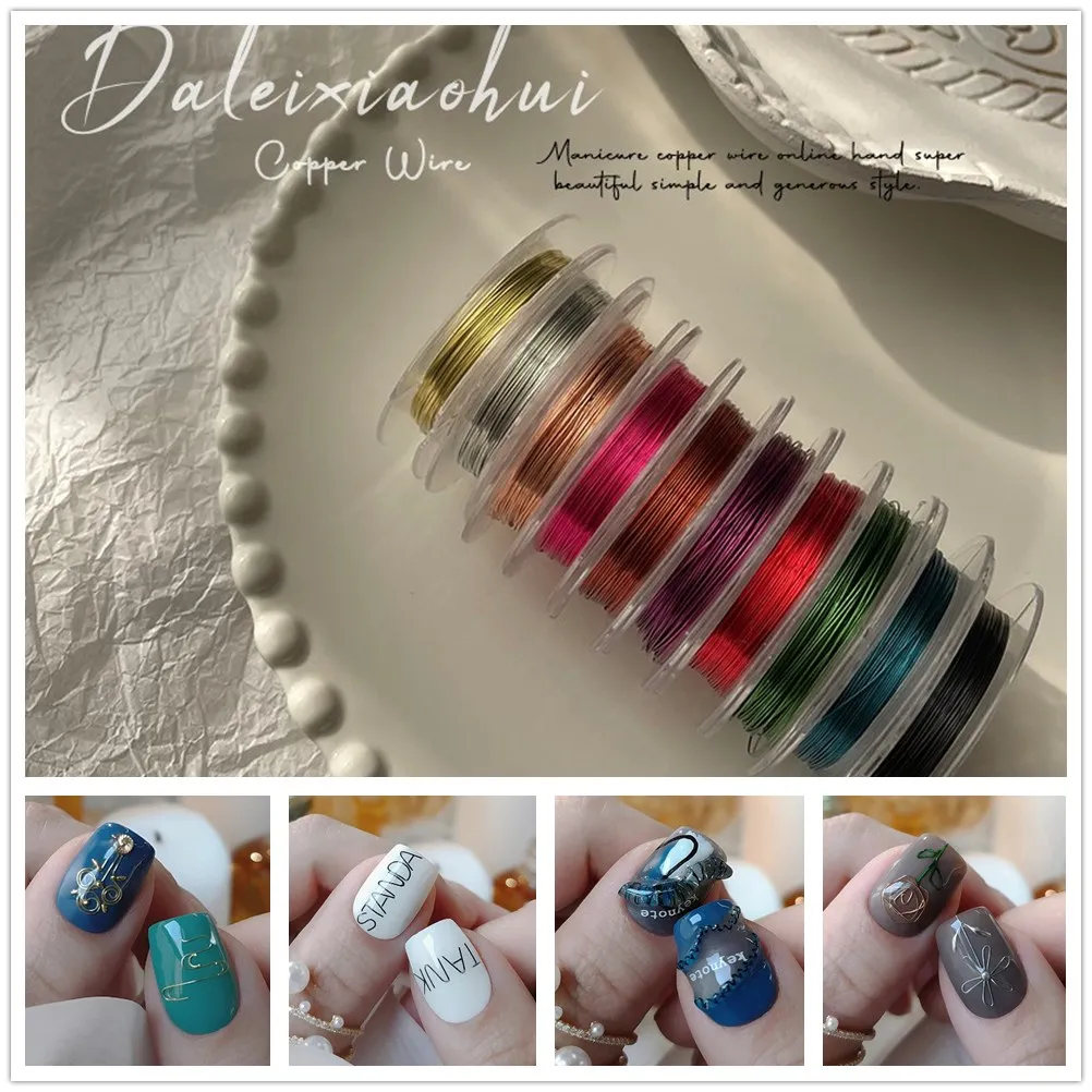 10Rolls Metal Line Metal Color Copper Spring Nails Accessories Nail Decoration DIY Wire Pro Charm Decorations 10M/Roll