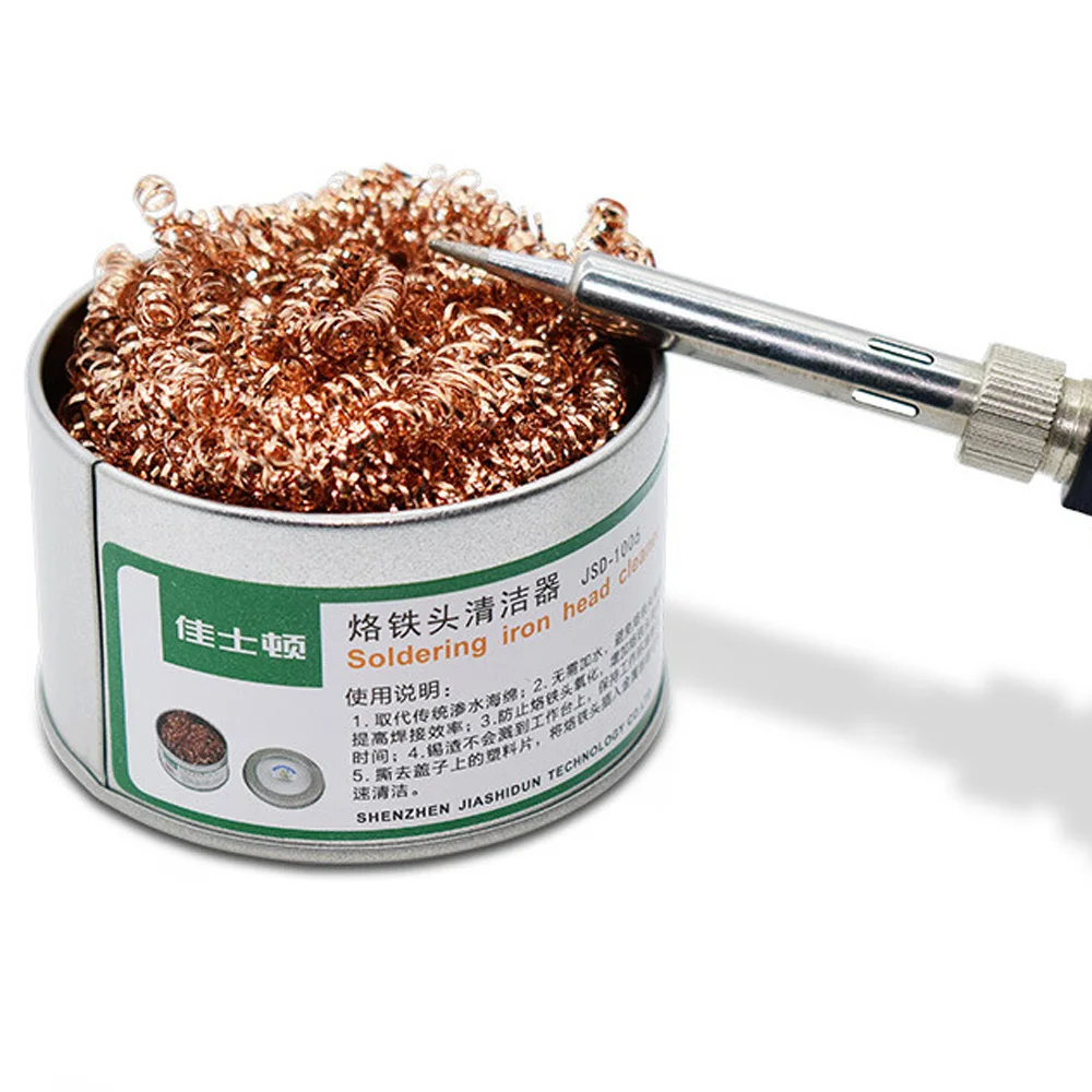Cleaning Ball Desoldering Soldering Iron 10pcs Clean Sponge Clean Nozzle Tip Copper Wire Cleaner Ball Metal Box Cleaning Sponge