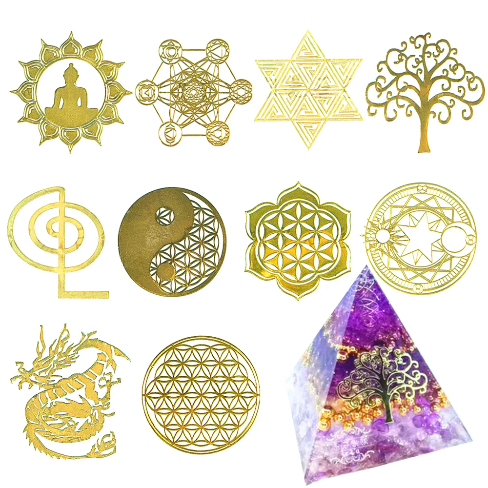 Mix 10pc New Tower Pattern Metal Copper Stickers Energy For DIY Resin Silicone Making Mould Craft Jewelry Tool Jewelry Making