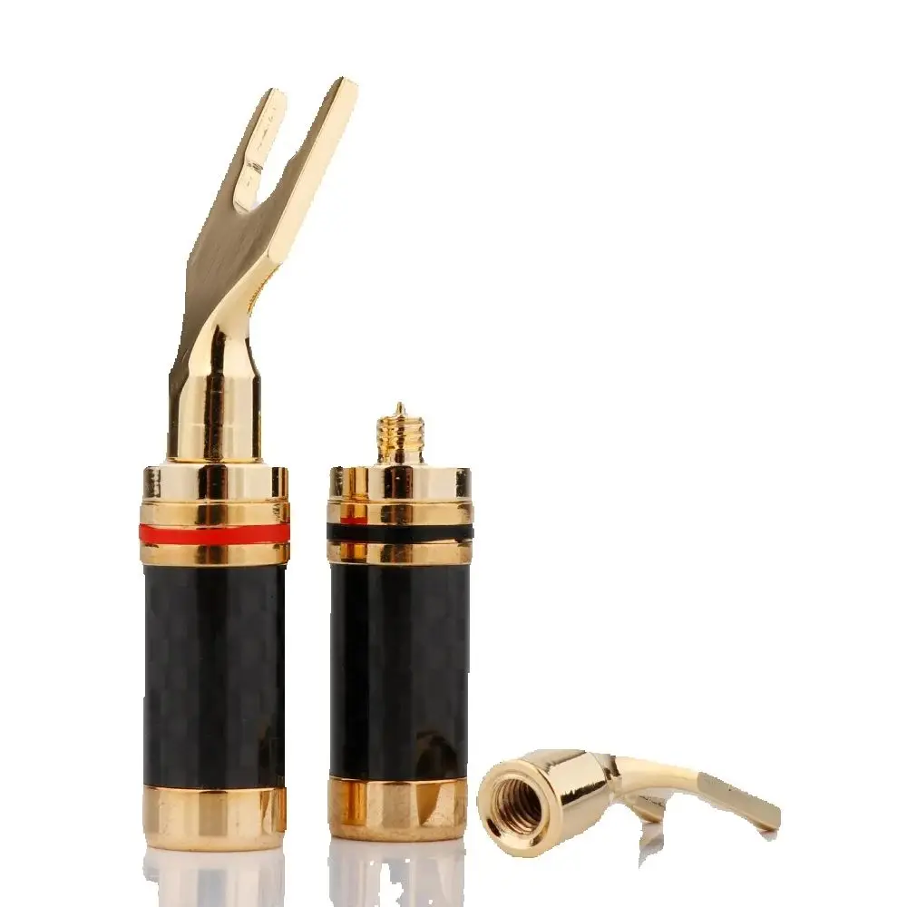 Y Spade Pure Copper 24K Gold Plated Locking Screw Spade Plug Gold Carbon Fiber Speaker Cable Wire Connector