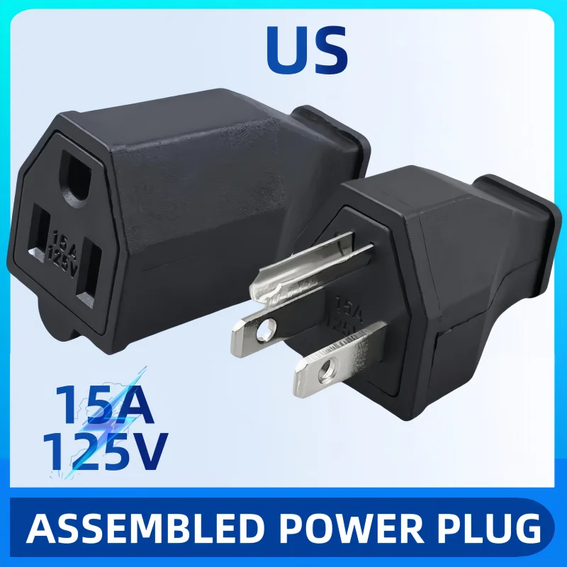 Black Copper American 3 Pins Power Plug Elcectrical AC 125V 15A US Power Cord Detachable Industrial Plug Socket