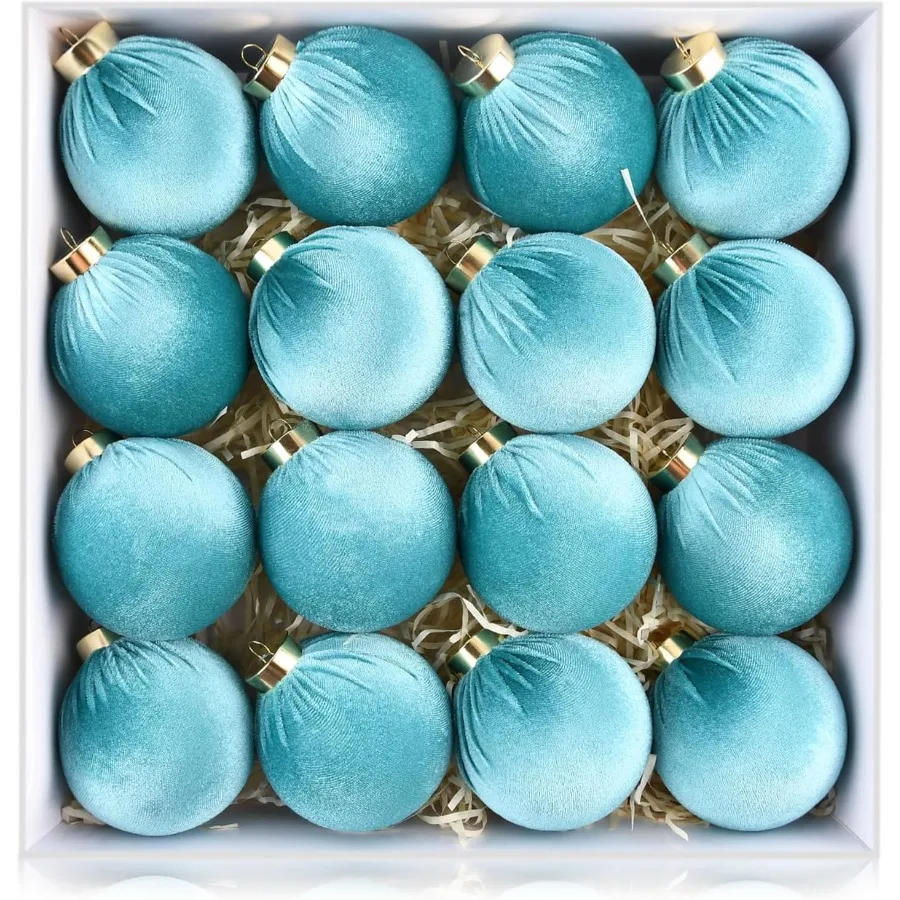 Velvet Ornaments for Christmas Tree Decorations Teal Christmas Ball Ornament for Indoor Holiday Decor Shatterproof Xmas Bulbs O