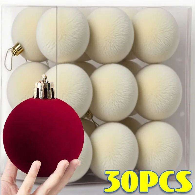 12Pcs/Box 8cm Velvet Christmas Ball Pendant Xmas Tree Ornaments with Hanging Loop Christmas Hanging Decoration for Home Party #  Read more