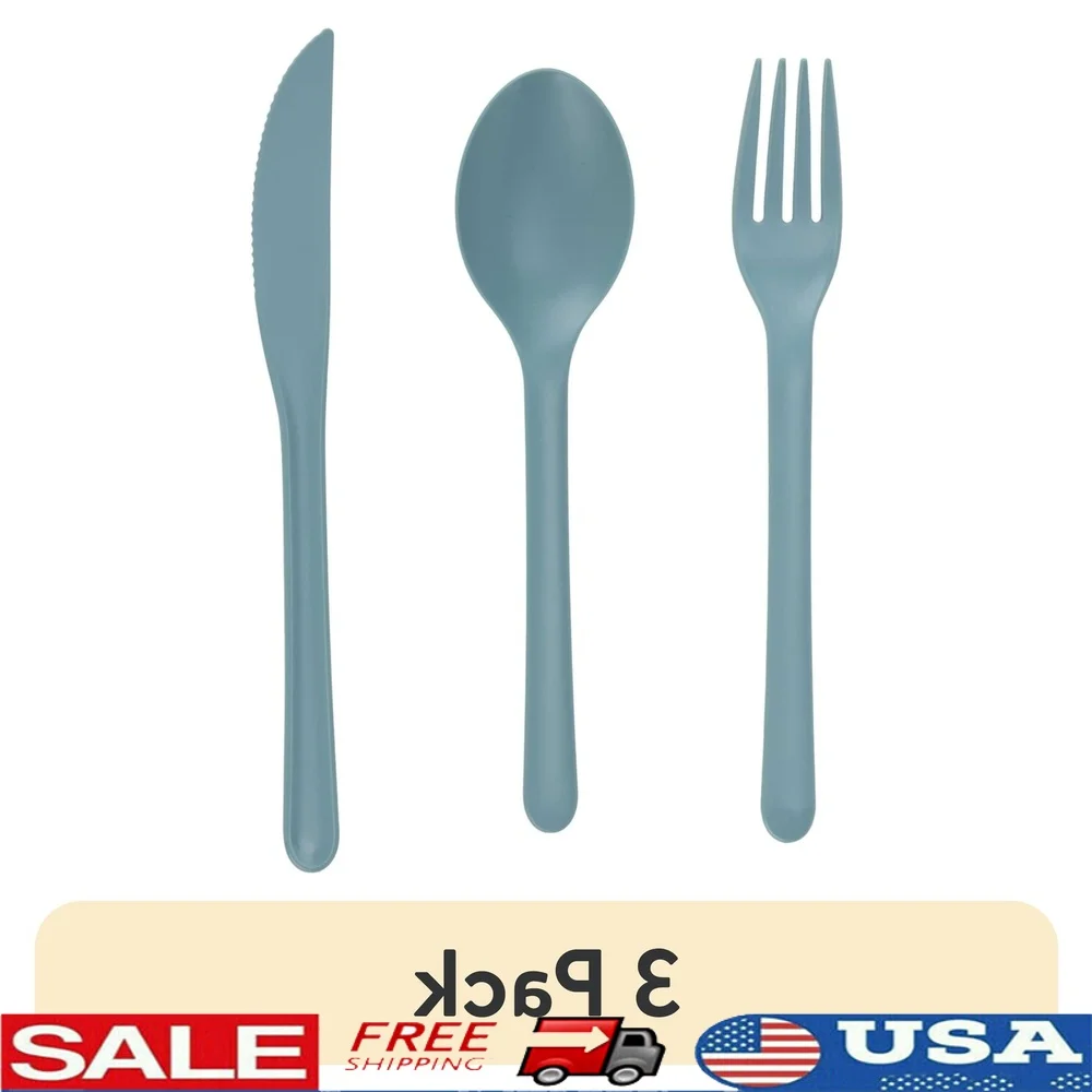 Eco-Friendly Recycled Plastic Flatware Set 3 Piece Durable Non-Toxic Utensils Outdoor Dining Picnics Parties Dishwasher Safe BPA