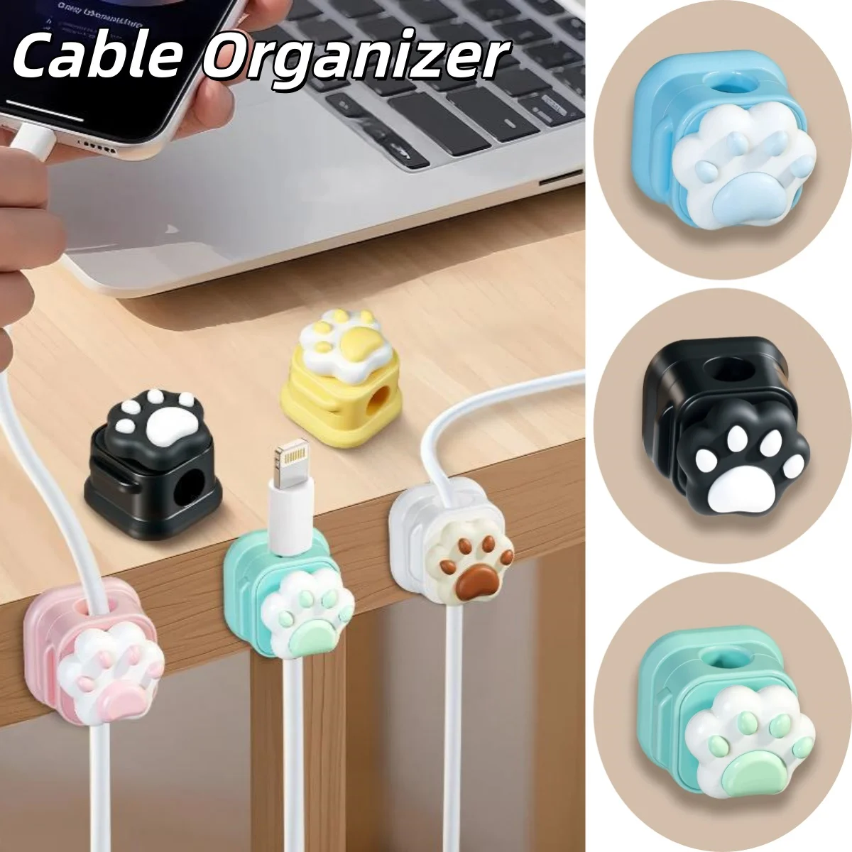 Cable Organizer Plastic Data Cable Holder Cat Paw Cable Winder Wire Organizer Self Adhesive Cable Management Office Cord Holder  Read more