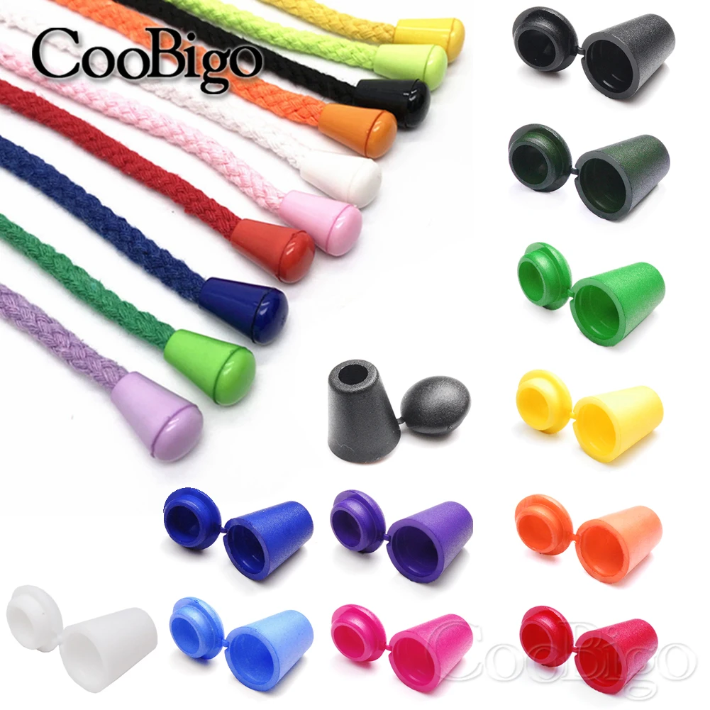 50pcs Colorful Plastic Cord Ends Bell Stopper With Lid Lock Toggle Clip Paracord Clothes Bag Sportswear Shoelace Rope Parts