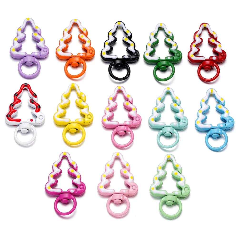 5pcs/lot Multicolor Metal Christmas Tree Ring Spring Clasp Carabiner Keychain Clips Hook Dog Chain DIY Jewelry Buckle Connector