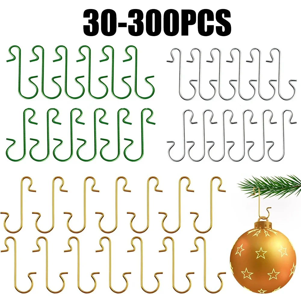 30/300pcs S-Shaped Metal Hooks Holder Christmas Tree Ball Pendant Hanging Decorations for home Navidad New Year