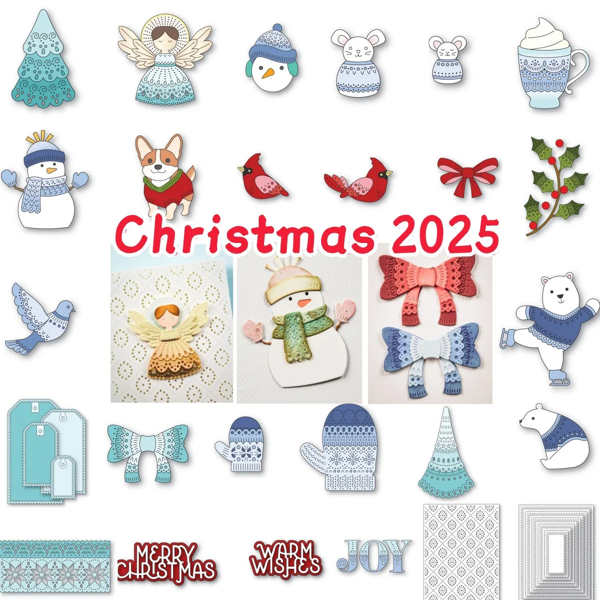 Bow Bear Angel Snowman Snowflake Tree Mouse Metal Cutting Dies for DIY Scrapbooking Supplies Paper Craft Handmade Christmas 2025