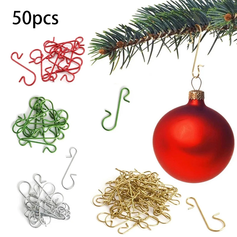 500/50PCS Christmas Ornament Metal Hook Xmas Tree Balls Pendant Hanging S-Shaped Hooks Xmas New Year Party Home Decor Supplies  Read more