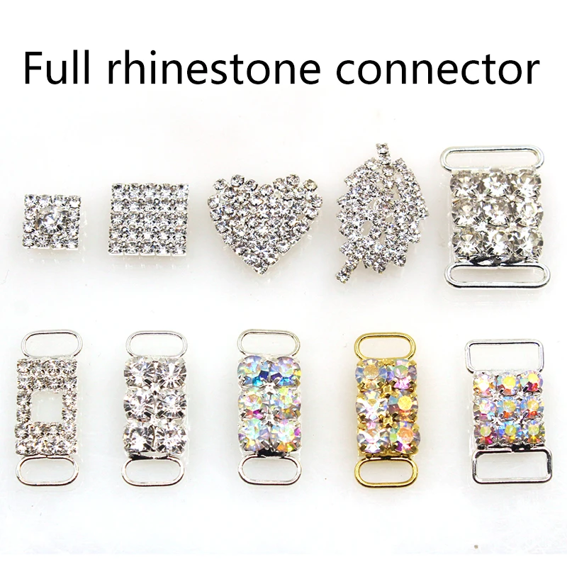 Lkeran 10pcs/lot 10 Style Rhinestone Buckles for Ribbon Craft Sewing Metal Brass Diamond Crystal Button for Wedding Decorative