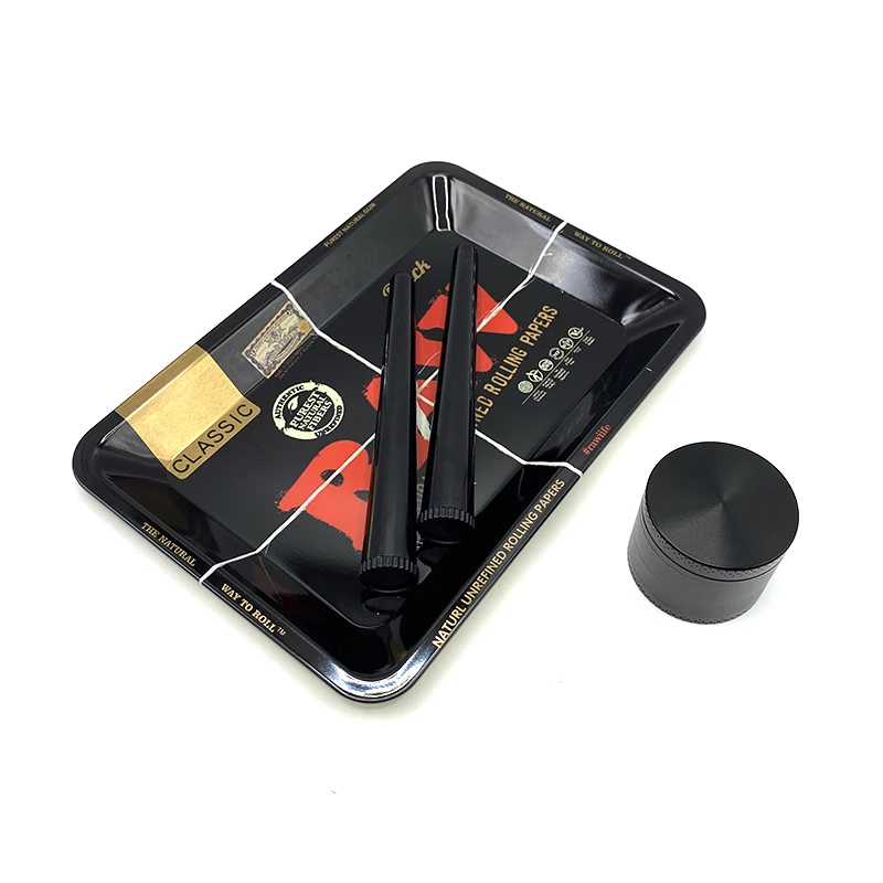 Zinc Alloy 40mm Grass Grinder 4-layer Crusher with Plastic Tube 115MM King Size Metal Rolling Tray 18X12.5cm Smoking Accessories