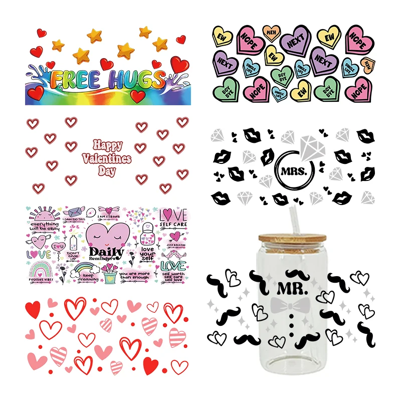 UV DTF Transfers Stickers, Cup Wraps, Printed for DIY Glass Ceramic Metal Leather, Valentine's Day, 3D, 16oz D8008