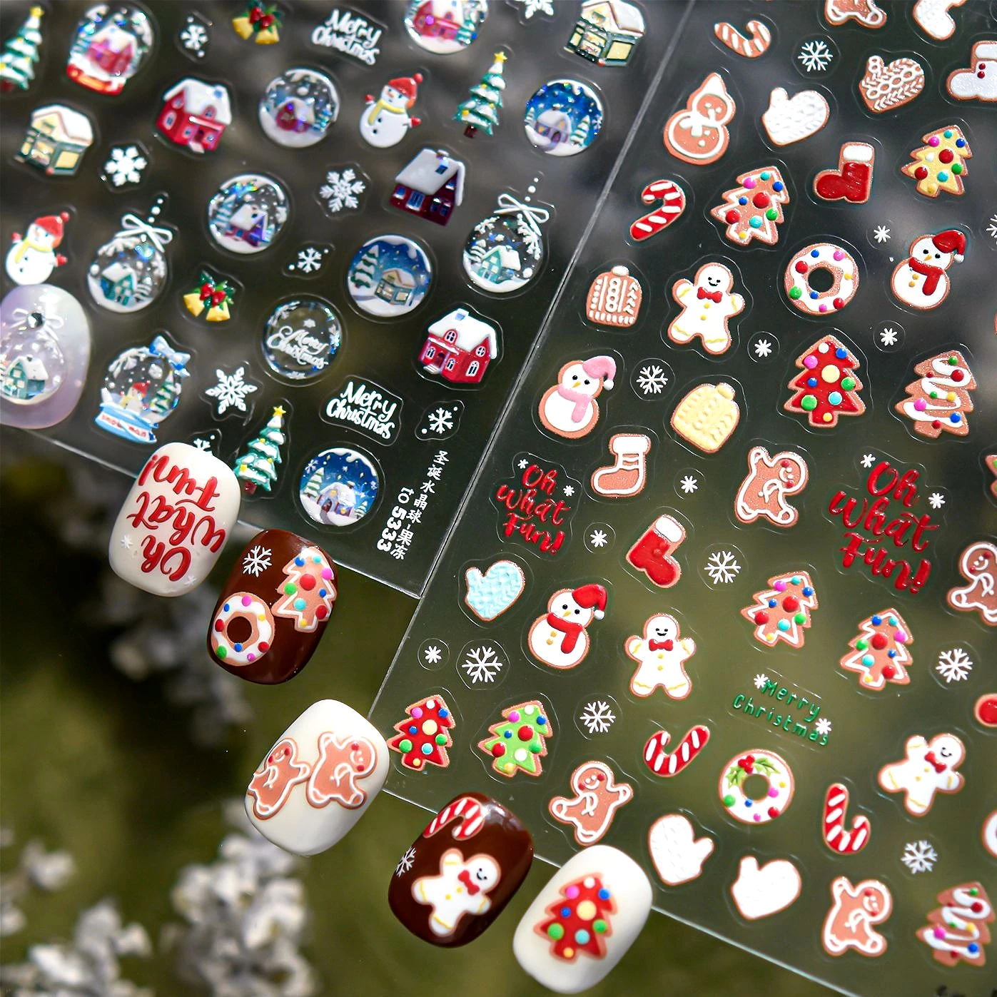 Snowman Gingerbread Man Socks Christmas Tree Crystal Ball Santa Claus Snowflakes Bowknot House Winter Nail Art Stickers Decals