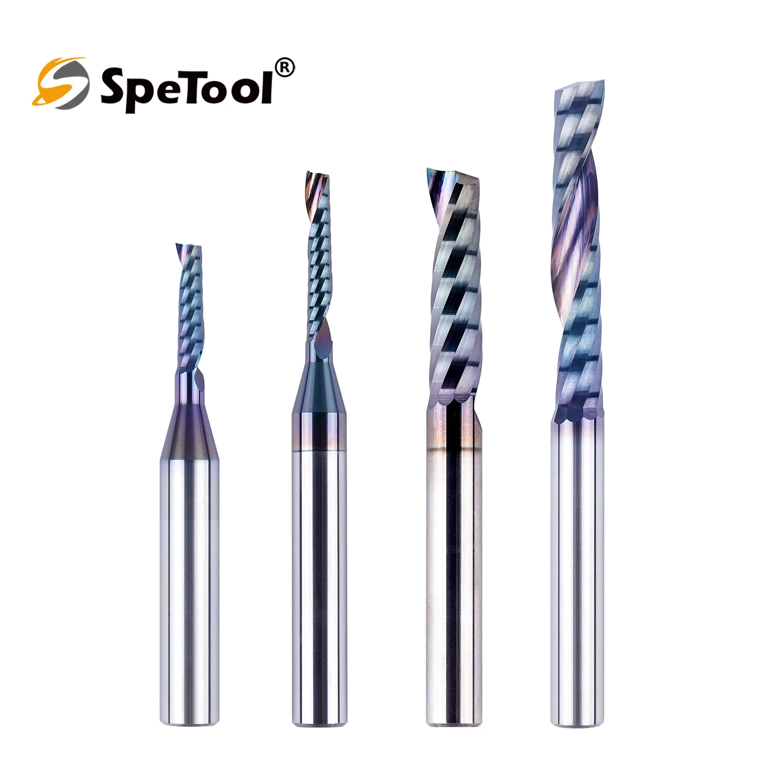 SpeTool 1pc O Flute UpCut Carbide End Mill Single Flute Spiral CNC Router Bit 1/8 1/4 inch Shank Wood Aluminum Acrylic Cutter