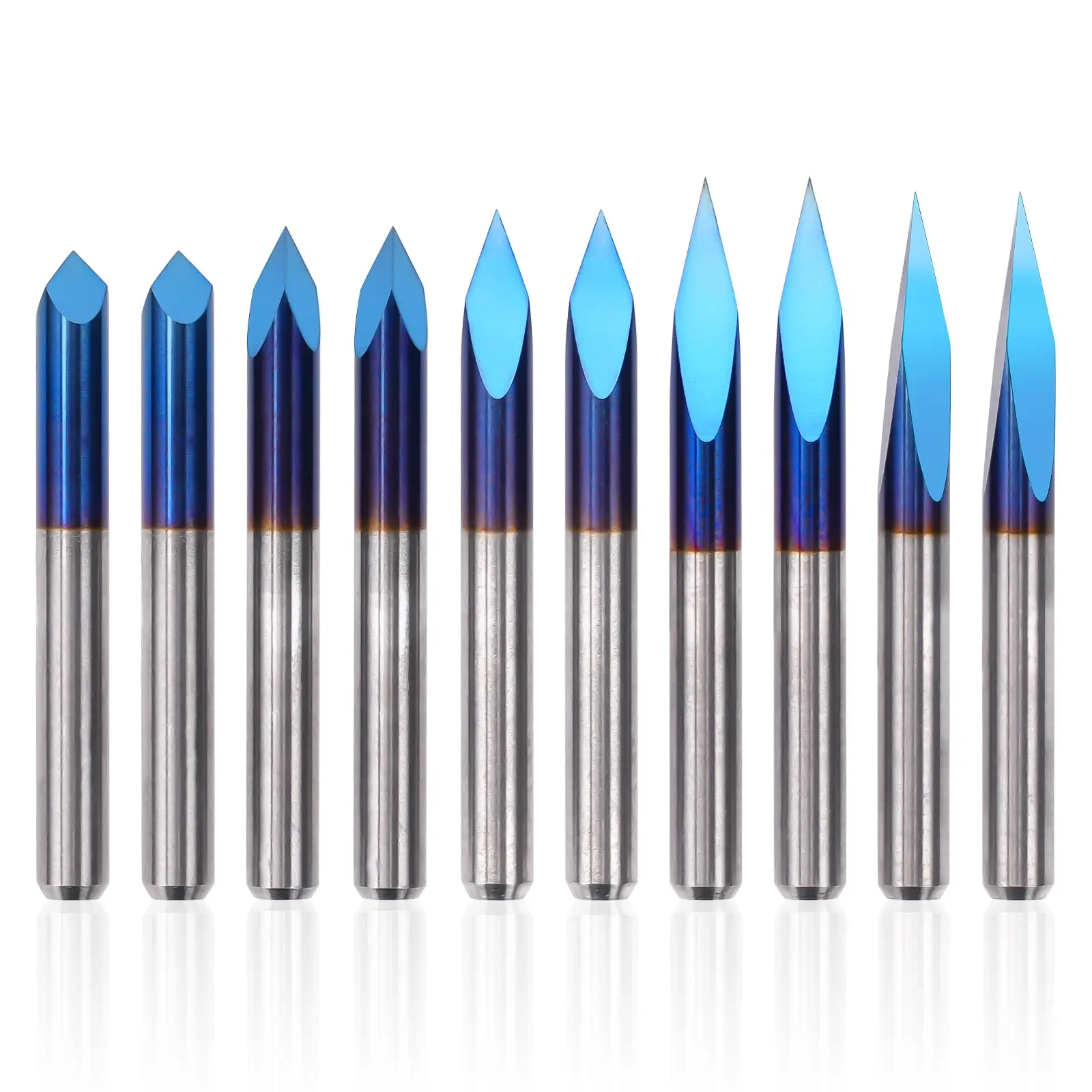 Triangular CNC Router Bits Set, 1/8" Shank Engraving Carving V-Bit with Nano Blue Coating Bits for Acrylic Wood MDF Aluminum Let