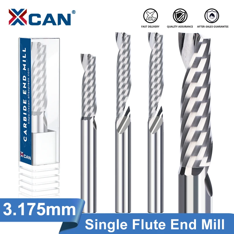 XCAN Single Flute End Mill 3.175mm Shank Up Cut Spiral Carbide Milling Cutter CNC Router Bit for Acrylic Wood Aluminum  Read more