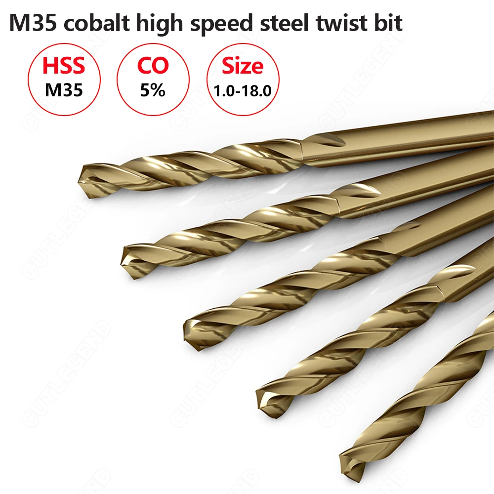 CUTLEGEND Cobalt Twist Drill Bit M35 EX HSSCO HSSE Metal Aluminum Copper Stainless Steel Wood Hole Tool Titanium 1mm-3.9mm 10Pcs