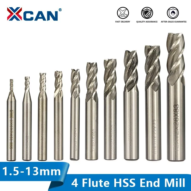 XCAN HSS Milling Cutter 4 Flute End Mill 1.5-13mm for CNC Machine Milling Tools Router Bit Metal Cutter Aluminum Milling Bit