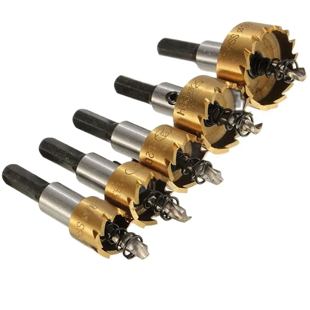 5Pcs Titanium Coated HSS Drill Bit Hole Saw Set Stainless Steel Metal Alloy Cutting 16 18.5 20 25 30mm for Woodworking  Read more