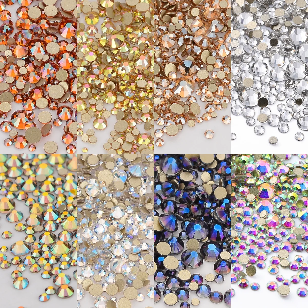 1440Pcs Mix Size SS3-SS20 Champagne Glass Flat Back Rhinestone Golden Shadow Glitter Non Hotfix Rhinestones for Nail Art Clothes  Read more