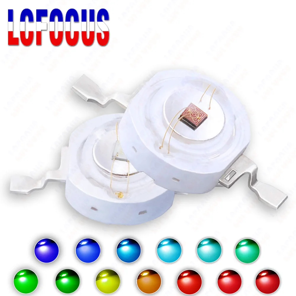 Colorful 1W 3W 5W LED Chip Red Green Blue Yellow Amber Orange 440nm 470nm 480nm 500nm 540nm 570nm 660nm 670nm COB Light Beads