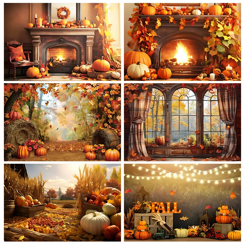 Autumn Gold Forest Party Decoration Background Pumpkin Thanksgiving Harvest Farm Barn Fireplace Maple Truck Photography Supplies