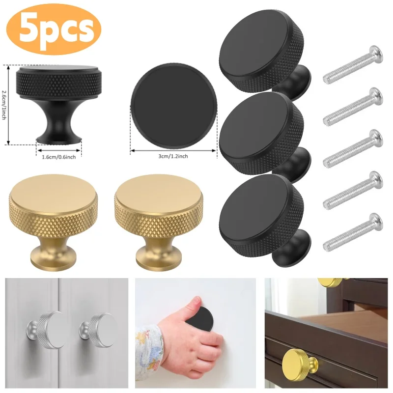5pcs Round Knurled Cabinet Pulls Drawer Handle Gold/Black Single Hole Metal Handle Dresser Knobs Furniture Knobs with Knurling  Read more