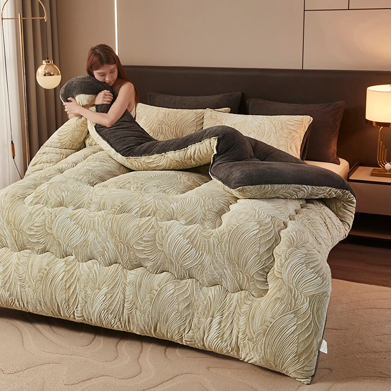 Winter Thickened Warm Double-Sided Velvet Quilt - 1Pc Comfortable Thick Comforter for Core Bedroom & Apartment Bedding
